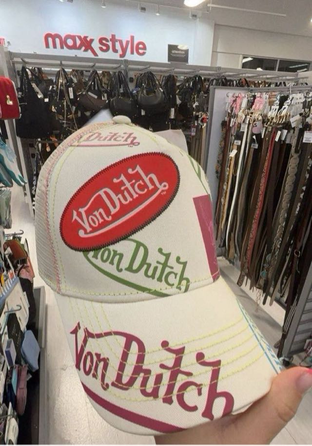 A stylish cap featuring multiple colorful Von Dutch logos.