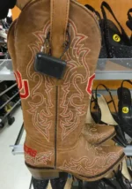 Stylish brown cowboy boots with intricate stitching and a classic design.