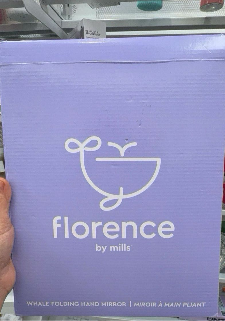 A whimsical whale-shaped folding hand mirror from Florence by Mills.