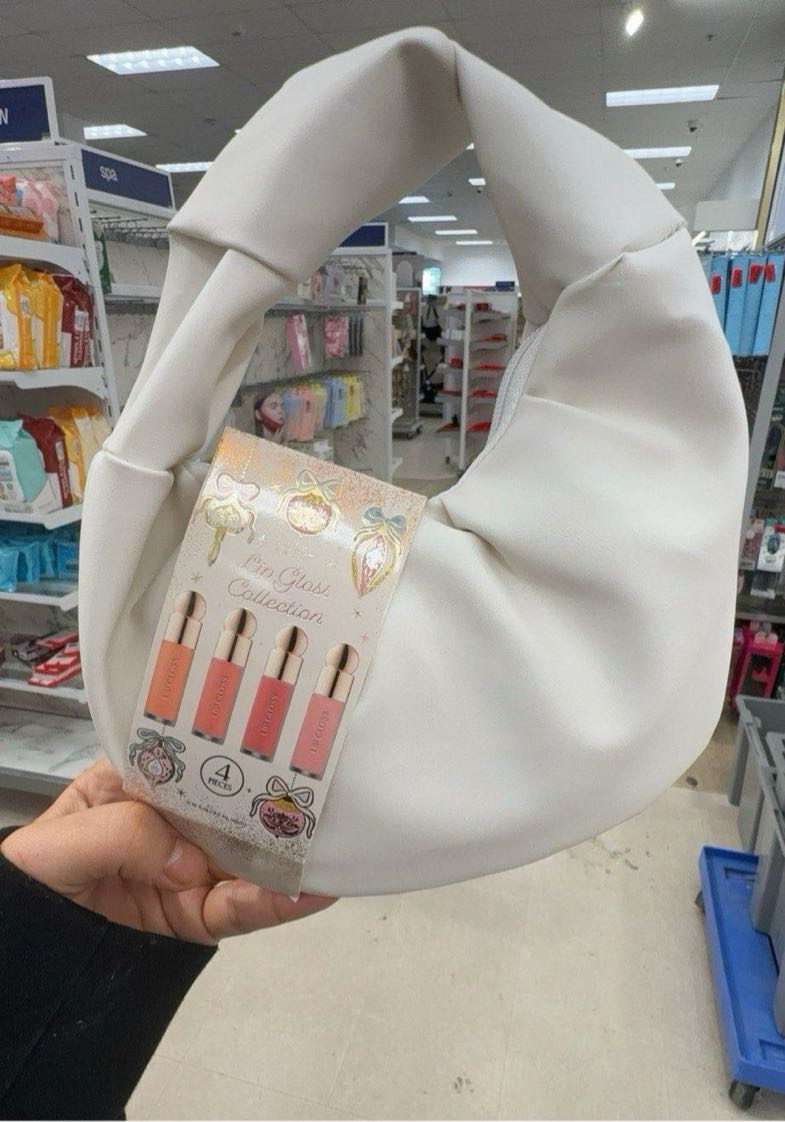 A stylish white hobo bag with a soft, curved design, perfect for casual outings.