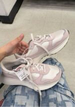 Lightweight and stylish athletic sneakers in a pink and white colorway, perfect for casual wear or workouts.