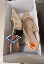 Stylish women’s heeled sandals with a mesh design and a pointed toe.