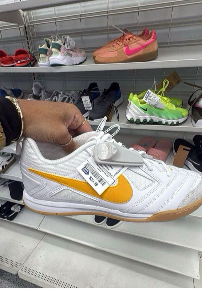 These are white and yellow Nike soccer shoes designed for performance on the field. They feature a sleek design with a comfortable fit.